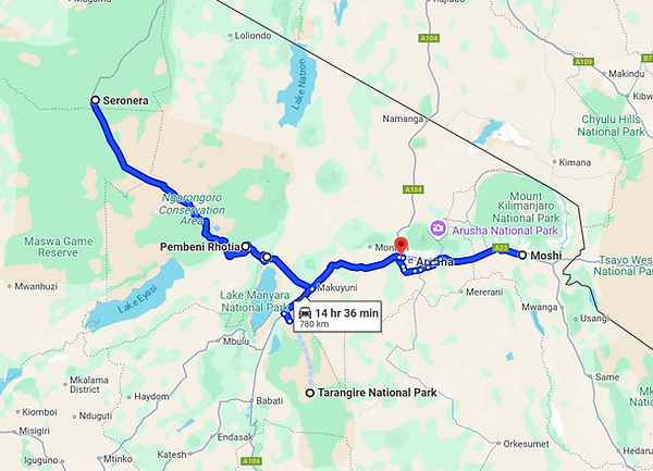 МАРШРУТ: Аруша –оз.Маньяра - Серенгеті – Кратер Нгоронгоро –Тарангіре- Аруша